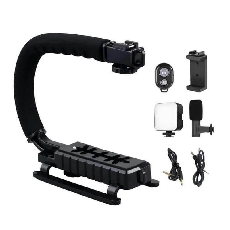 ✋ Diseño ergonómico y estable: El soporte tipo grip mejora el control y reduce vibraciones, logrando videos más estables y profesionales.