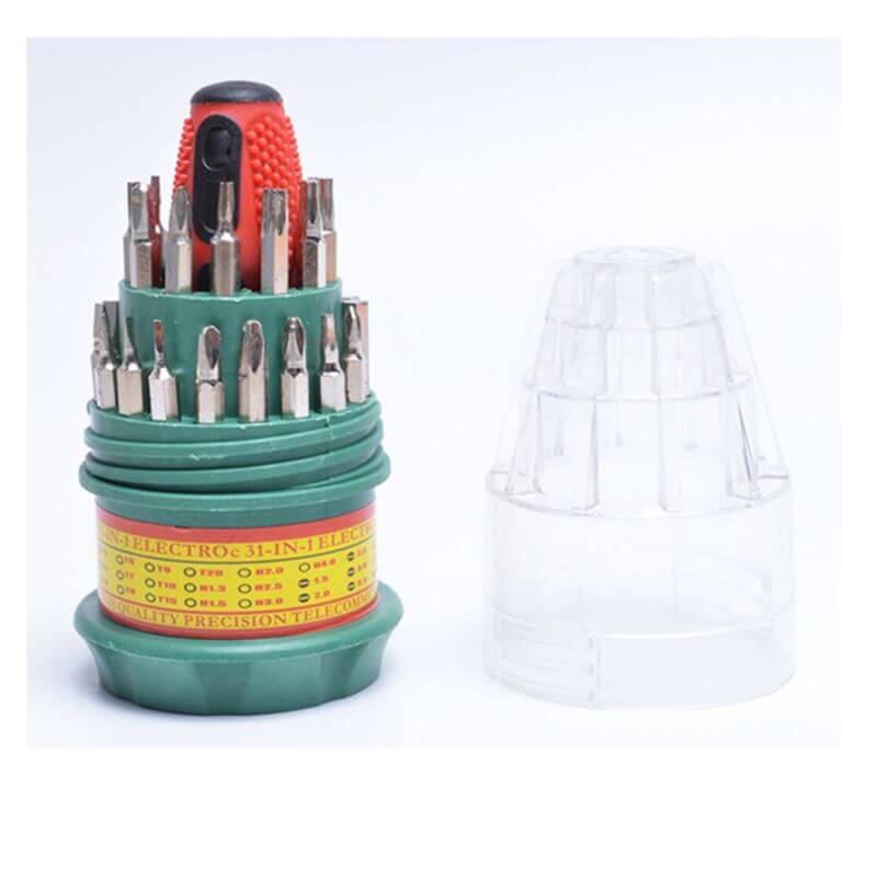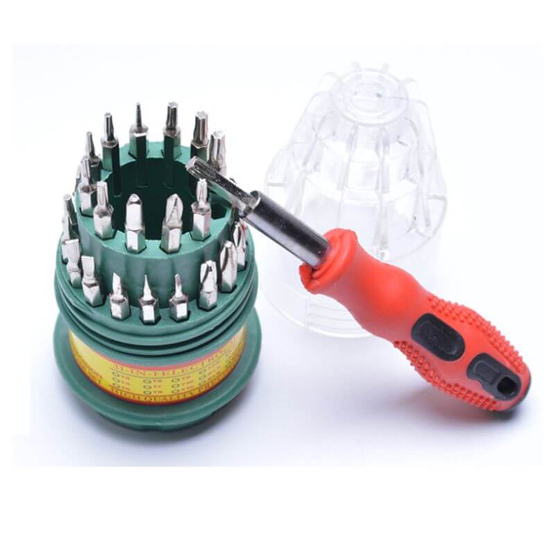 - Pequeño juego de destornilladores portátiles: equipado con un pequeño mango, lo que te permite entrar en la zona estrecha que es difícil de alcanzar. Fácil de transportar.